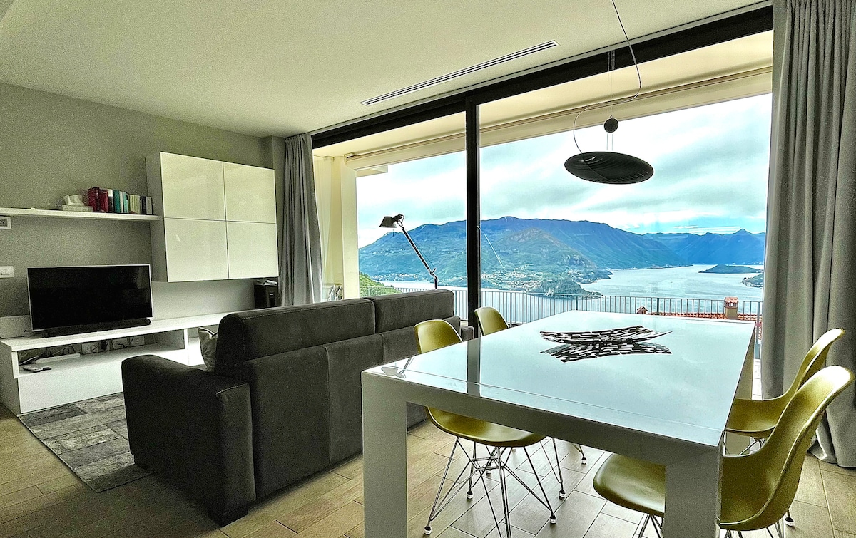 Appartamento di 70 mq di nuova costruzione in casa indipendente con parcheggio privato e magnifica vista lago e monti. Situato a 3 minuti dal centro paese e dalla spiaggia. Composto da ampia cucina con soggiorno con divano letto matrimoniale, grande terrazza vista Lago di Como, camera matrimoniale con balcone, bagno con doccia e ingresso. Giardino con Jacuzzi. Nelle immediate vicinanze di siti turistici e direttamente sul Sentiero del Viandante. Aria Condizionata. Codice CIR 097030-CNI-00025