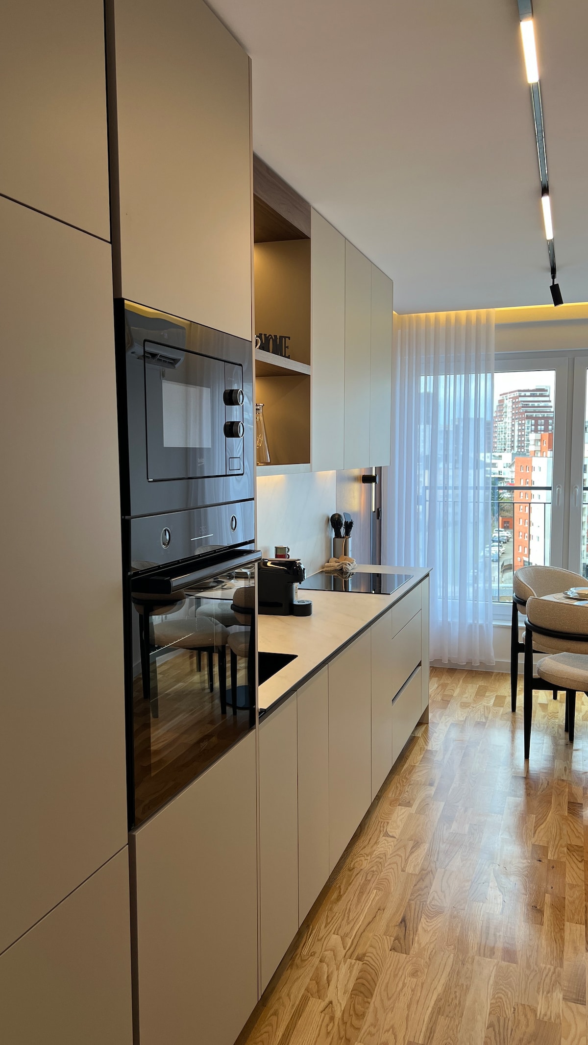Ruby Apartment is designed in a modern style, combining elegance with comfort. The interior features clean lines, neutral tones, and carefully selected contemporary furnishings. Large windows allow natural light to flood the space, creating a bright and welcoming atmosphere. Every detail is thoughtfully curated, from the minimalist decor to the high-quality materials, offering a stylish yet cozy living experience. Ideal for those who appreciate modern aesthetics and functional design.