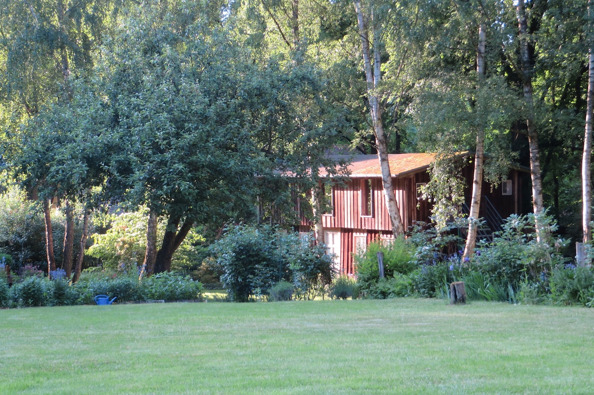 It isn't large but has all the comforts without being fancy. The cottage is charming and old, not a designer tiny house. Berlin's center and Potsdam can be reached quickly. Private access, balcony with water views, terrace and garden all around. Living room with kitchen, bathtub, bedroom and extra sleeping space for an extra charge on the sofa bed. We live next door, so never an access or key problem. We are on the Wall Trail. Pets are also welcome.