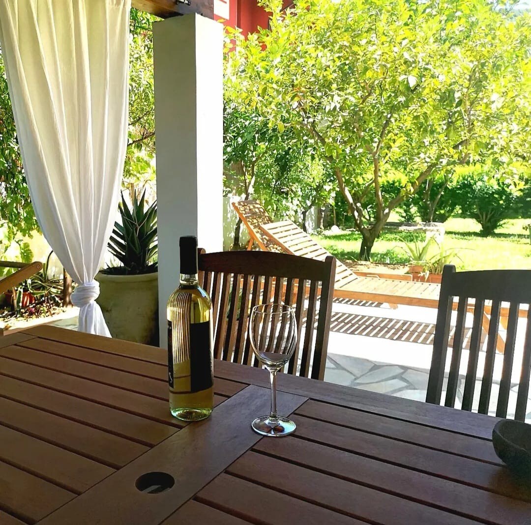 Beautiful loft studio with large panoramic veranda. It is the largest of two small adjoining apartments -with a private entrance- of a country house built in 2019, Sa Canistedda. Sa corbe can accommodate a maximum of 4 people. On the ground floor there is the living area and the bathroom; the loft houses the sleeping area. The veranda has a comfortable outdoor shower and is ideal for outdoor lunches and dinners. The garden and play area can be shared.