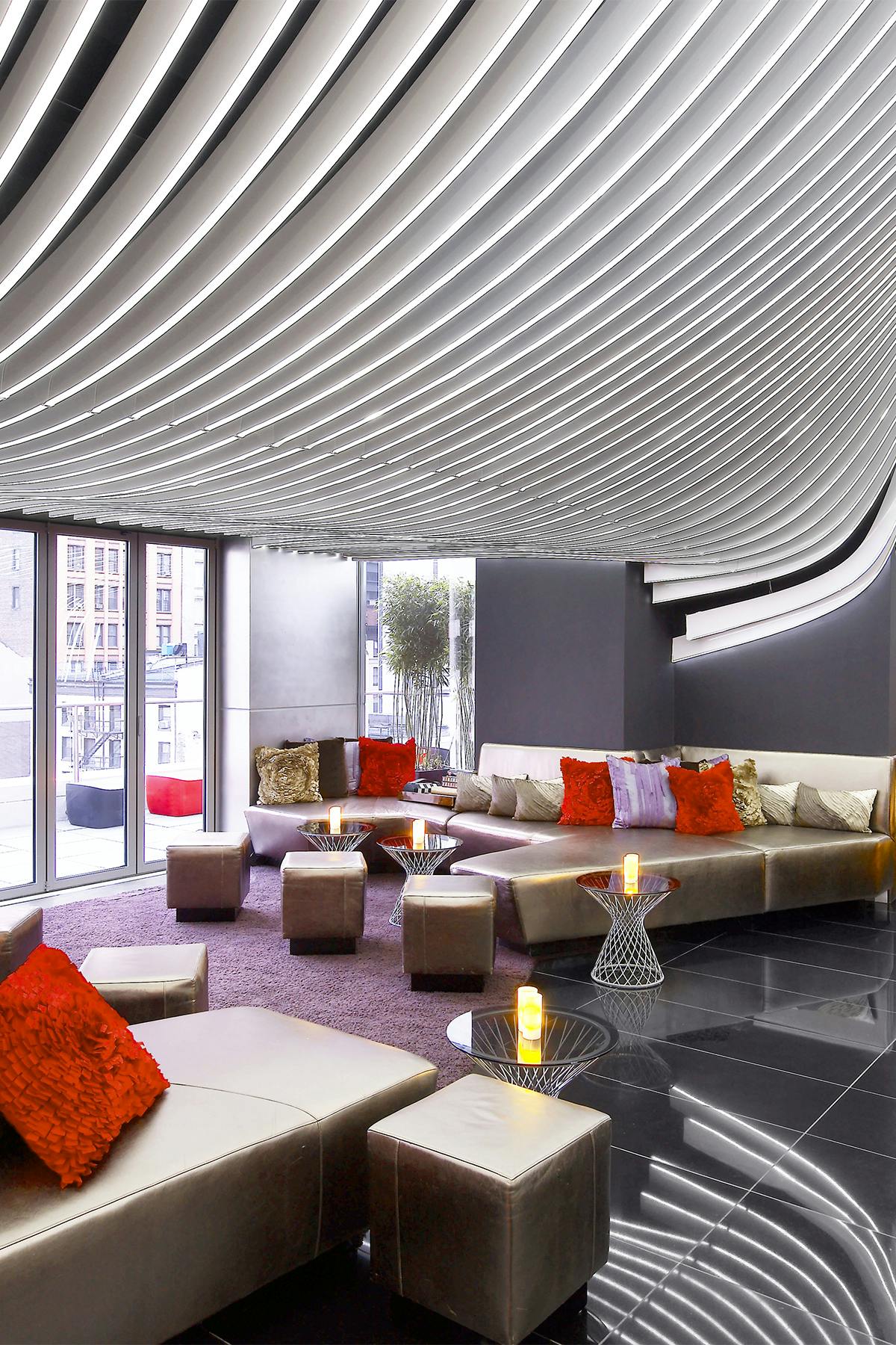 Welcome to Moxy NYC Downtown, where the energy of Lower Manhattan meets bold, playful design. Just steps from One World Observatory, the Brooklyn Bridge, and Wall Street, this hotel blends high-style and high-tech. Shoot hoops indoors, hit the arcade, or unwind with cocktails in the vibrant lounge. Rooms feature smart layouts, skyline views, and streaming-ready TVs. Moxy is where business trips turn into unforgettable city stays.