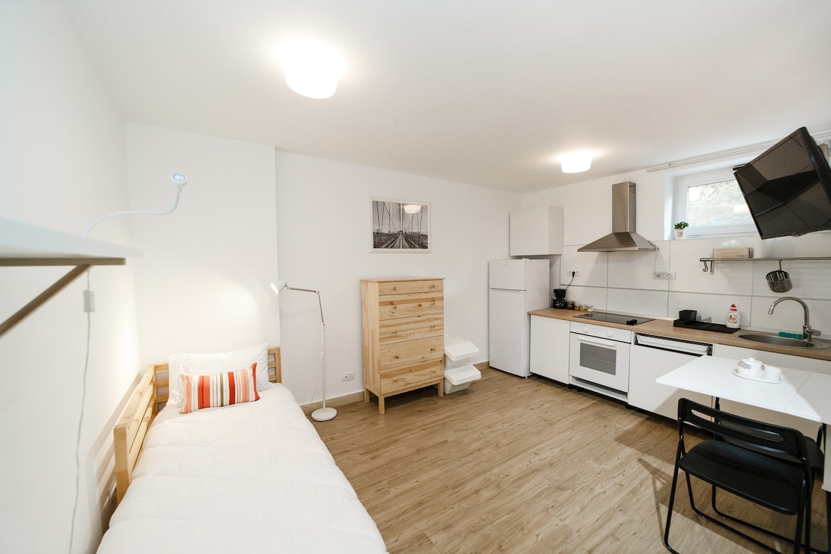 Ideal pentru cei care vor acces rapid și confort, într-un spațiu proaspăt renovat, cu aer urban și accente naturale. ☑️ Cobori din tren, urci în apartament. ✔️ Ce primești: ✅ 1 dormitor cu pat dublu ✅ 1 living cu canapea extensibilă ✅ Bucătărie complet echipată ✅ Liniște, vedere spre curtea interioară ✅ Etajul 1 – acces rapid ✅ Locație centrală, lângă toate punctele de interes Apartament recent renovat și decorat cu elemente naturale –accente verzi, lumină naturală din plin și un aer relaxat.