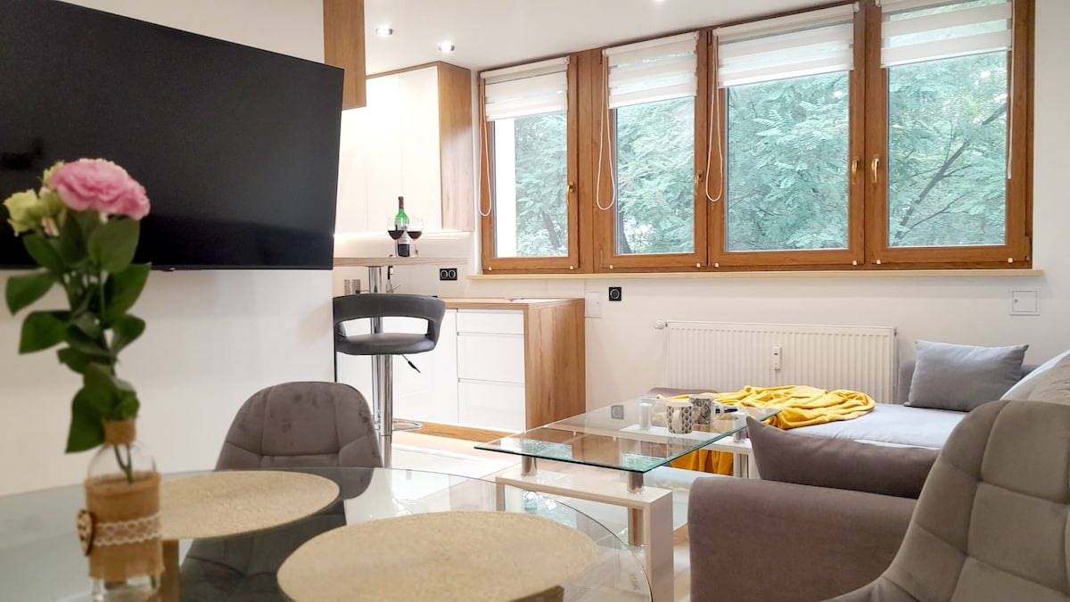 Apartment Ligocka is a bright and comfortable apartment located in the peaceful and safe district of Brynów, Katowice. Recently renovated, it offers a calm, minimalist space with plenty of natural light — ideal for a relaxing stay. Just steps away from the iconic Kopalnia Wujek and its museum, a symbol of Silesian miners’ heritage, the apartment combines modern comfort with the area’s rich history, offering an authentic and convenient Silesian living experience.