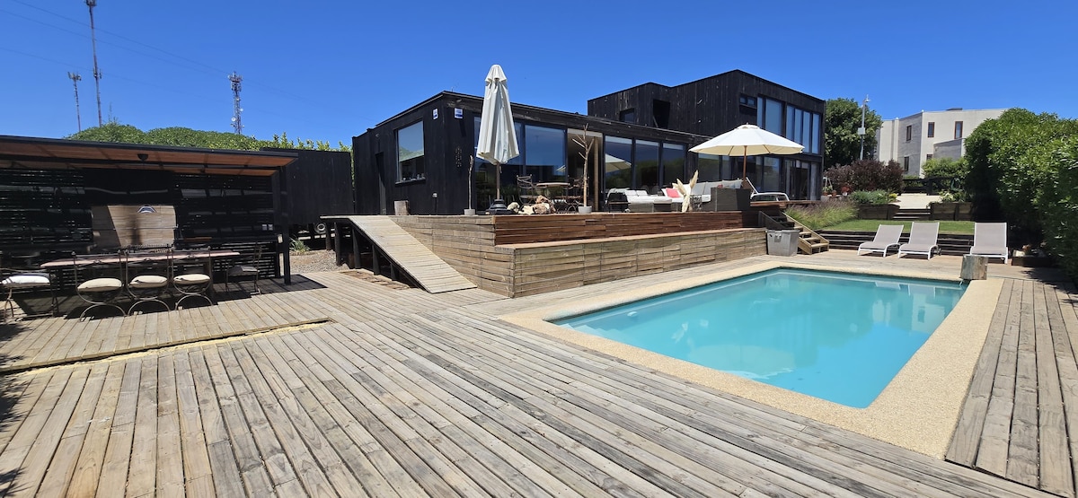 Beautiful large house between Puchuncavi and Maitencillo, Large pool at room temperature. Hot tub (40°), pool table, table tennis, darts, dollhouse, gazebo, and fire pit 11 minutes from the beach by car (8 km) Surrounded by forest, large grass garden with capacity for 14 people in 5 rooms (3 double, 2 of them en suite) very comfortably. Wi-Fi (Starlink 150mb)