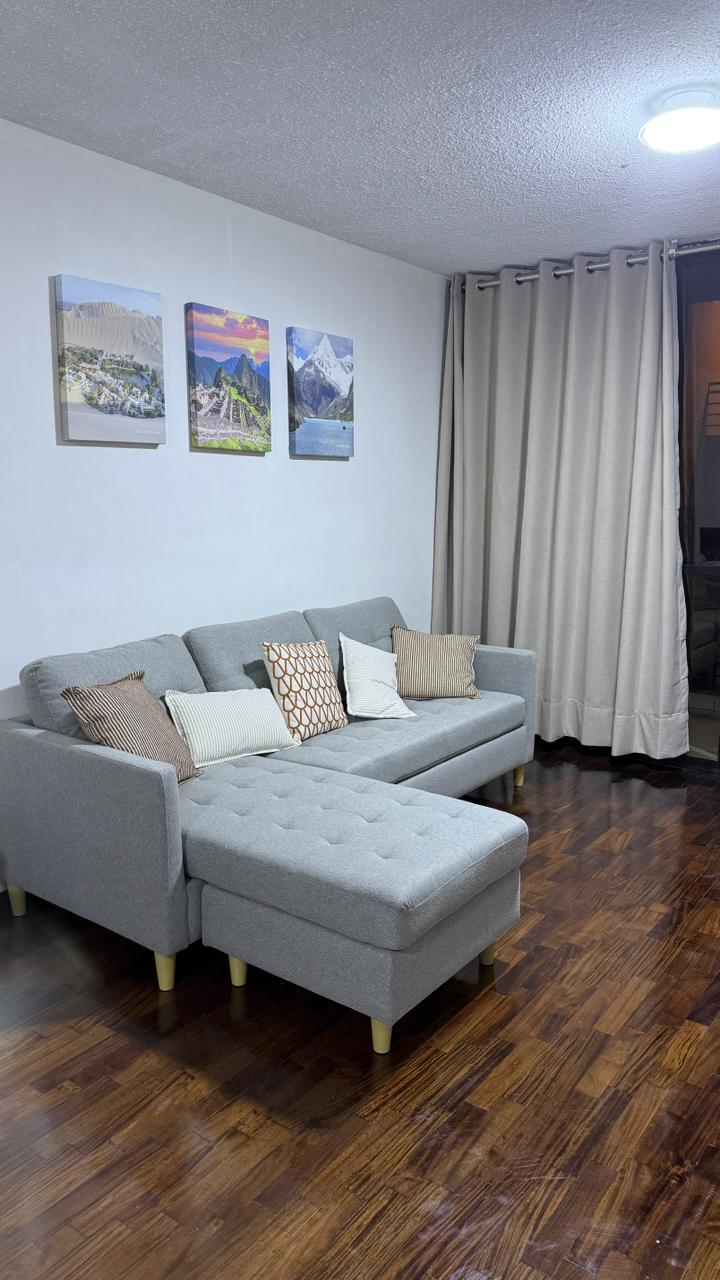 Acogedor departamento ideal para familias pequeñas. Ubicado en una zona segura. Cuenta con habitación privada con TV, baño personal y ropero. Cocina equipada con minibar, cocina a gas, lavadora y barra para comer. Comedor pequeño con ventana y TV adicional. Incluye cama plegable para un tercer huésped. Buena ventilación con dos extractores de aire, con agua caliente, WiFi, TV cable y área de parrilla junto a un jardín ideal para comidas al aire libre. ¡Reserva ahora y vive una escapada perfecta!