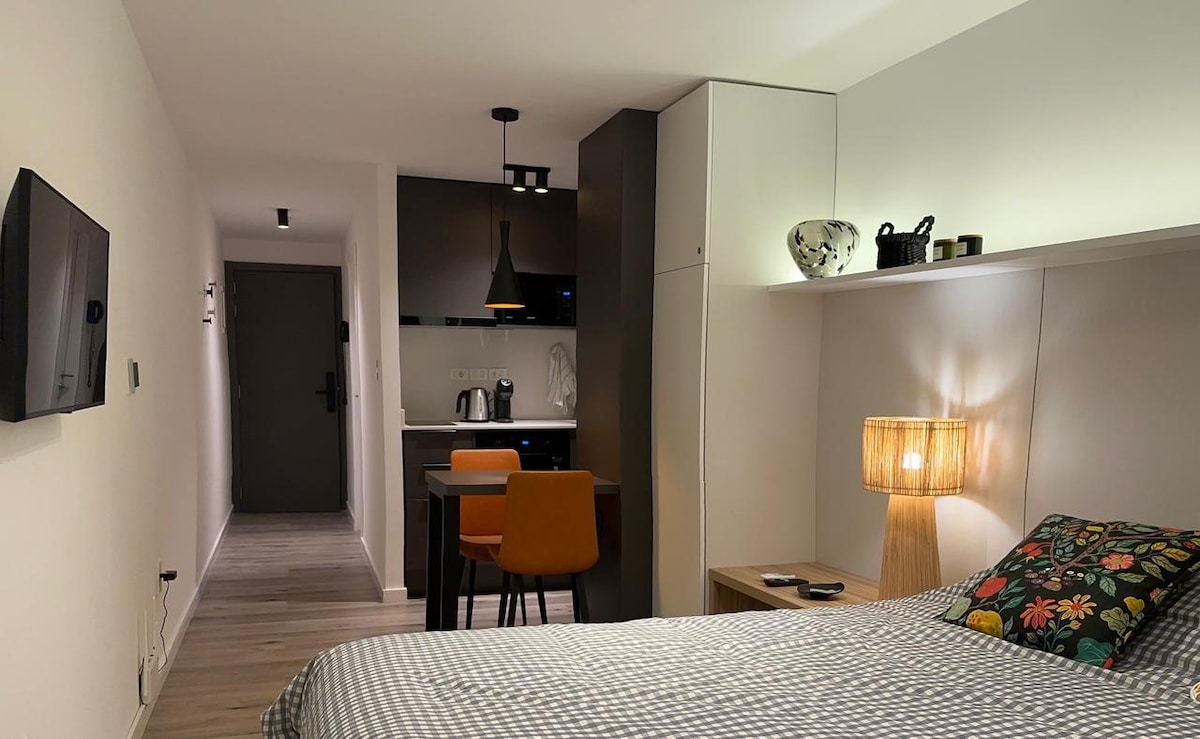 Enjoy a unique stay in this beautiful apartment with an exclusive patio located in the prestigious More Echevarriarza building. This place combines comfort, style, and access to premium services. Equipped kitchen, bathroom, and a cozy design that maximizes space. In the heart of Pocitos, close to the Rambla, restaurants, and shopping centers. Amenities: ✨ Bicycles ✨ A pool ✨ Gym ✨ Rooftop grills (stays longer than 30 days, for a fee) ✨ Laundry (for a fee) ✨ 24-hour security ✨ Cowork
