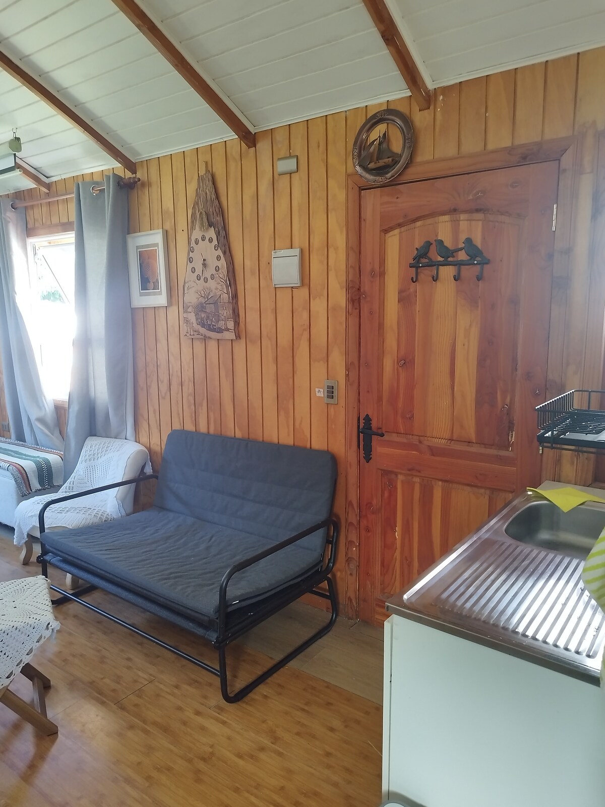 Cabin in nature, in a green pampas full of flowers, pure air and the sound of the countryside. Perfect retreat to disconnect from the urban rhythm and enjoy tranquility. It has an equipped kitchen, heating, a cozy bed and a bright space to relax. Just minutes from Río Tranquilo, but far enough away to feel like a real getaway. Perfect for families, groups of friends, and nature-loving couples looking for peace, privacy, and a magical setting.
