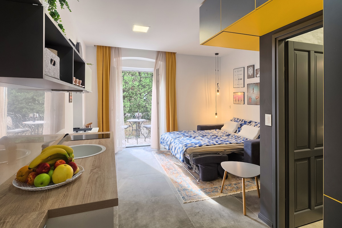 A 25 m2 cosy studio located in historical neighborhood at one of Austro-Hungarian old villa, one of the most famous street in Pula, former elite neighborhood of the Austro Hungarian Navy, where are lived high class officers. Apartment is stylishly furnished for you to have a comfortable stay in Pula.