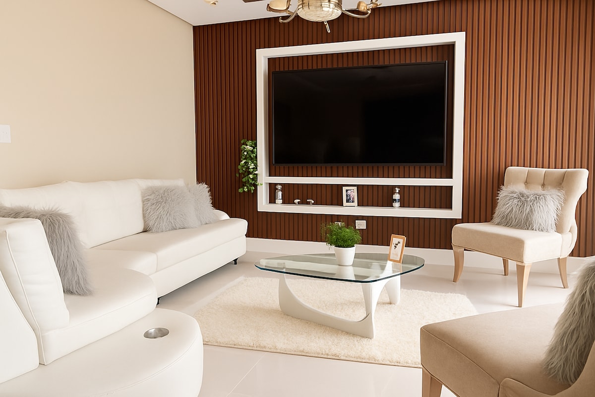 New and modern apartment, comfortable and well-lit space. Well-equipped kitchen and a clean and spacious bathroom, private and safe parking with 24/7 security. Located 10 minutes from the airport, downtown, etc. Perfect for enjoying a comfortable and quiet space with the whole family. Equipped with 3 bedrooms with TV, Wi-Fi, and air conditioning. We have a private event room, swimming pool, billiards, gym, BBQ area, children's play area, basketball court, WiFi.