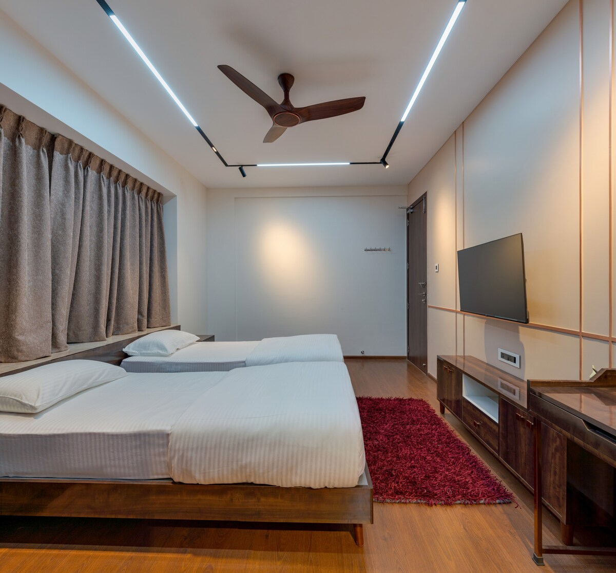 Chirayu Executive Suites Baner - exact location. It is an aparthotel and you’ll have a private room with an attached bathroom. The spacious common spaces outside the room might have to be shared with other guests. Check in: 1 pm Check out: 11 am Early check in or late check out only subject to availability. Within walking distance of Balewadi High Street and several workplaces such as Cummins, Veritas, etc. Extremely convenient location because of the proximity to the highway