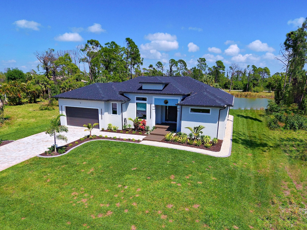 Welcome to "Blue Turtle-Escape" in Punta Gorda, Florida. - Executive level home with top-of-the-line finishes - Spacious kitchen with granite counters and stainless appliances - Large salt-water pool and built-in hot tub - Beautiful views of the canal from multiple areas - Relaxing Lanai with seating areas and ceiling fans - Complimentary bike rentals for local exploration - Close to Ponce De Leon Park and Historic Downtown Punta Gorda