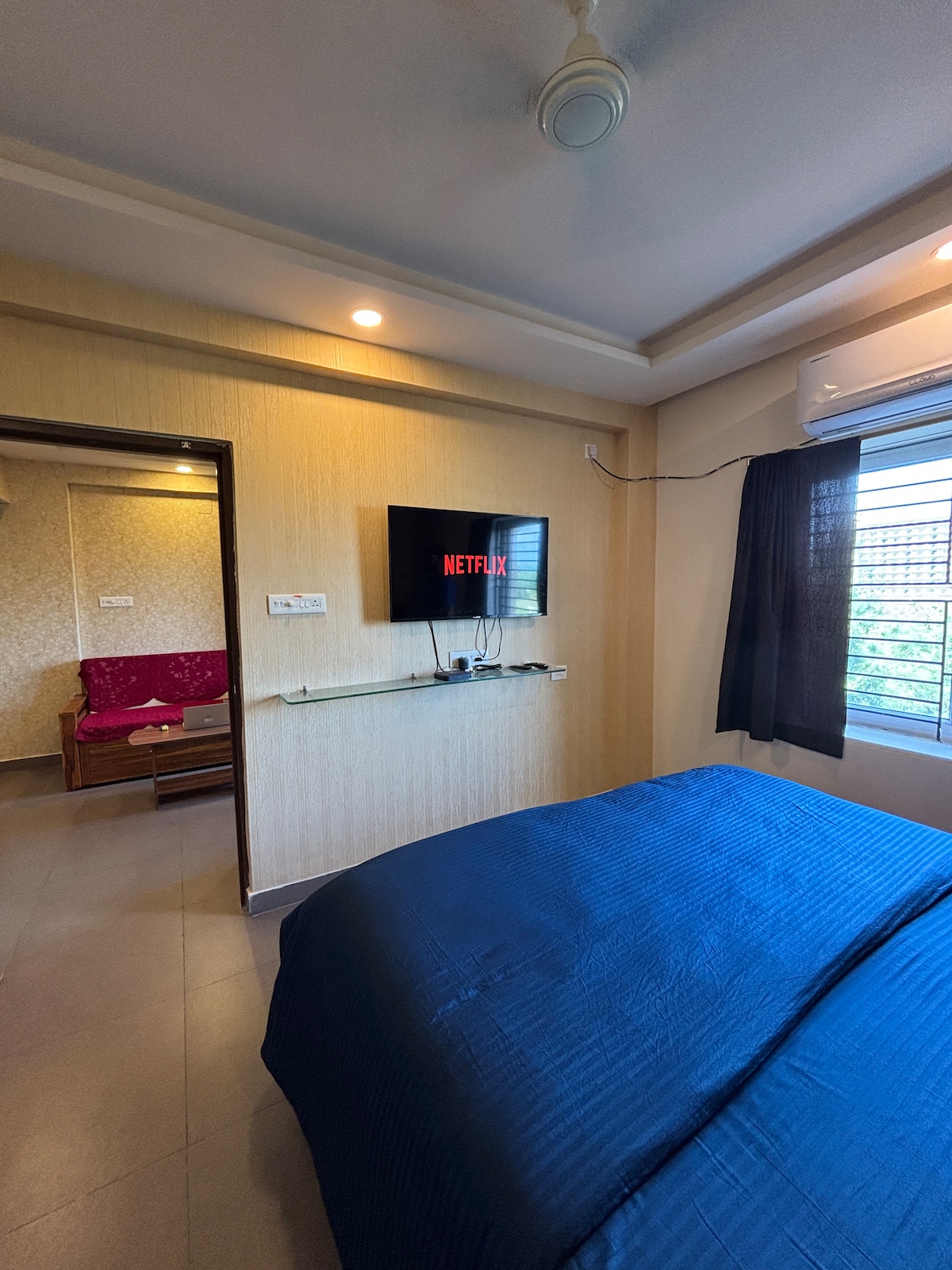 Enjoy a bright, airy, and spacious private room with an attached washroom, perfect for a comfortable and relaxing stay. This cozy retreat is bathed in natural daylight all day, creating a refreshing and peaceful ambiance. Key Features: ✔ Private room with attached washroom ✔ Air-conditioned comfort for a restful stay ✔ High-speed WiFi to stay connected ✔ Spacious & well-ventilated with ample natural light ✔ Ideal for small families seeking a home-like experience