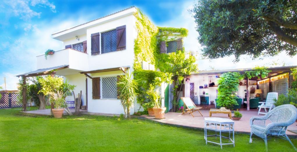Welcome to our Villa just 20min from the airport and only 3min walk from the beach. The space includes 3bathroom with shower, 3 bedrooms with A/C and flat tv in every room. We offer a fully equipped kitchen, a spacious living room and a seaview terrace where you can enjoy your morning coffee and relax with stunning sunset everyday. In the garden we have a big private pool (6×12mt), a BBQ, toys for kids, parking area. At the graundfloor there is a playroom. Make your stay unforgettable!