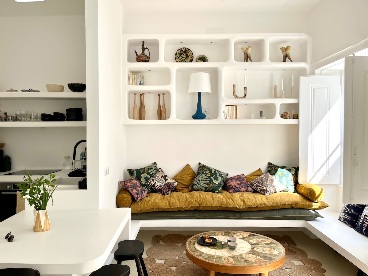 Come and discover this wonderful charming apartment in the heart of downtown Olhao. Renovated with great taste, this one-bedroom apartment located on the first floor of a small townhouse will seduce you with its sublime chic and colorful decor. Not to mention its magnificent rooftop terrace with views of the city's rooftops, which will be the ideal place for your relaxing moments during your Algarve getaway.