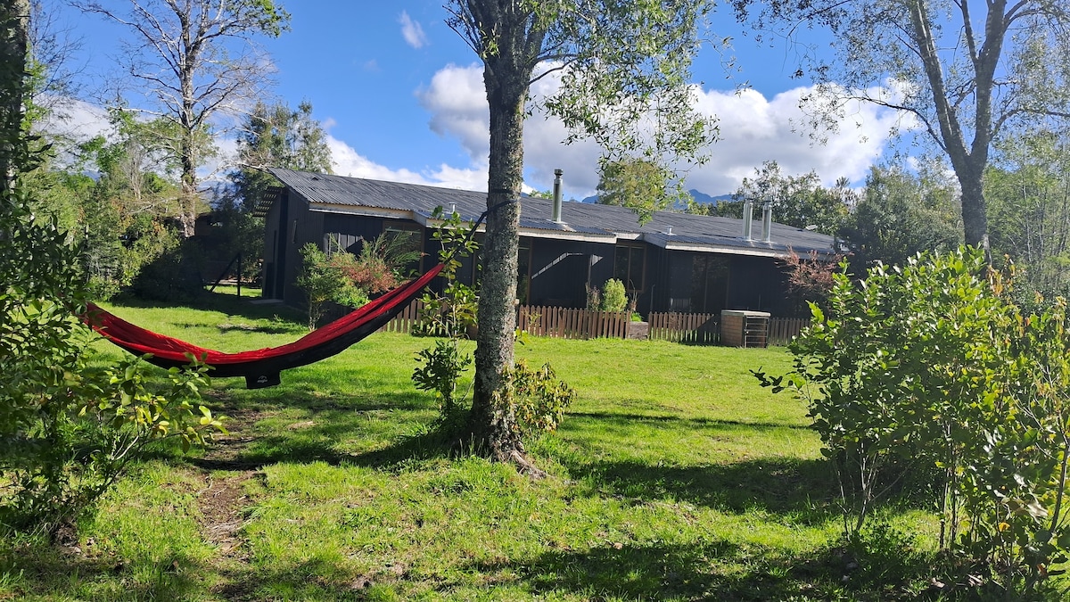 The cabin has a natural feel and rustic touch within amazing surroundings of the native forest and trees all around you. The cabin has been built with native and sustainable wood. it is well equipped. Is very cute and cozy space with a large veranda with an outdoor seating. There is a nice river with access within the property with a picnic table next to it to enjoy listening the river. Big sunny green garden, picnic table to enjoy the view of the mountains, a fire-pit and couple of hammocks.
