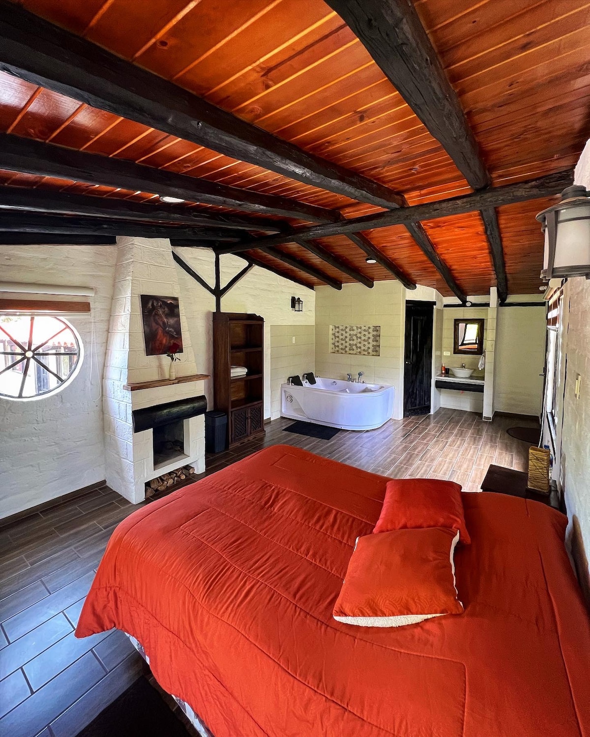 Experience luxury in our deluxe room with a private hot tub, nestled within our cozy family ranch and bed and breakfast. Enjoy the charm of a woodland cabin with all amenities for an unforgettable romantic getaway. Indulge in our steakhouse restaurant, trek scenic trails, ride horses, and unwind in hammocks. Just 18km from Quito in the Chocó Andean reserve, escape the city hustle to a serene natural haven.