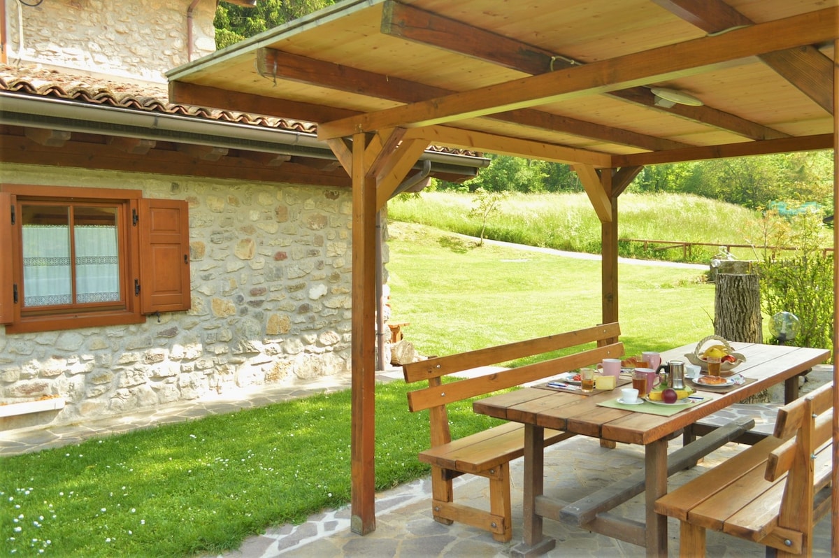 Mountain house at an altitude of 600 meters, surrounded by chestnut and beech trees. 6 km from Arco, near Lake Garda, ideal for a relaxing vacation and home working, for lovers of trekking, mountain biking, climbing and nature walks. Equipped with all the comforts of home, it has a large fenced garden (300 sqm), private parking and an outdoor relaxation area to spend evenings with friends. Pets are welcome. Satellite internet speed 200/250 mb/s.