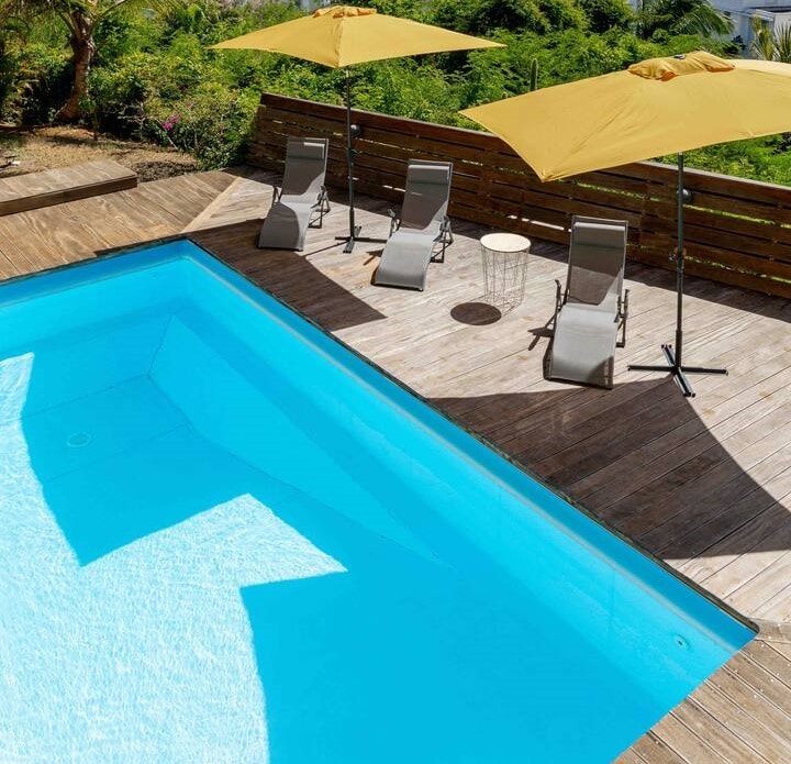 Villa Sabana is located in St François, 5 minutes from the city center and the beaches of St François. The 54 m2 villa offers accommodation with a large terrace and private pool, only for you (maintained by a professional) and not overlooked. You have a living room, dining room and fully equipped kitchen. Free Wi-Fi. Safe. Fresh water tank. Cleaning products available. No visits accepted.