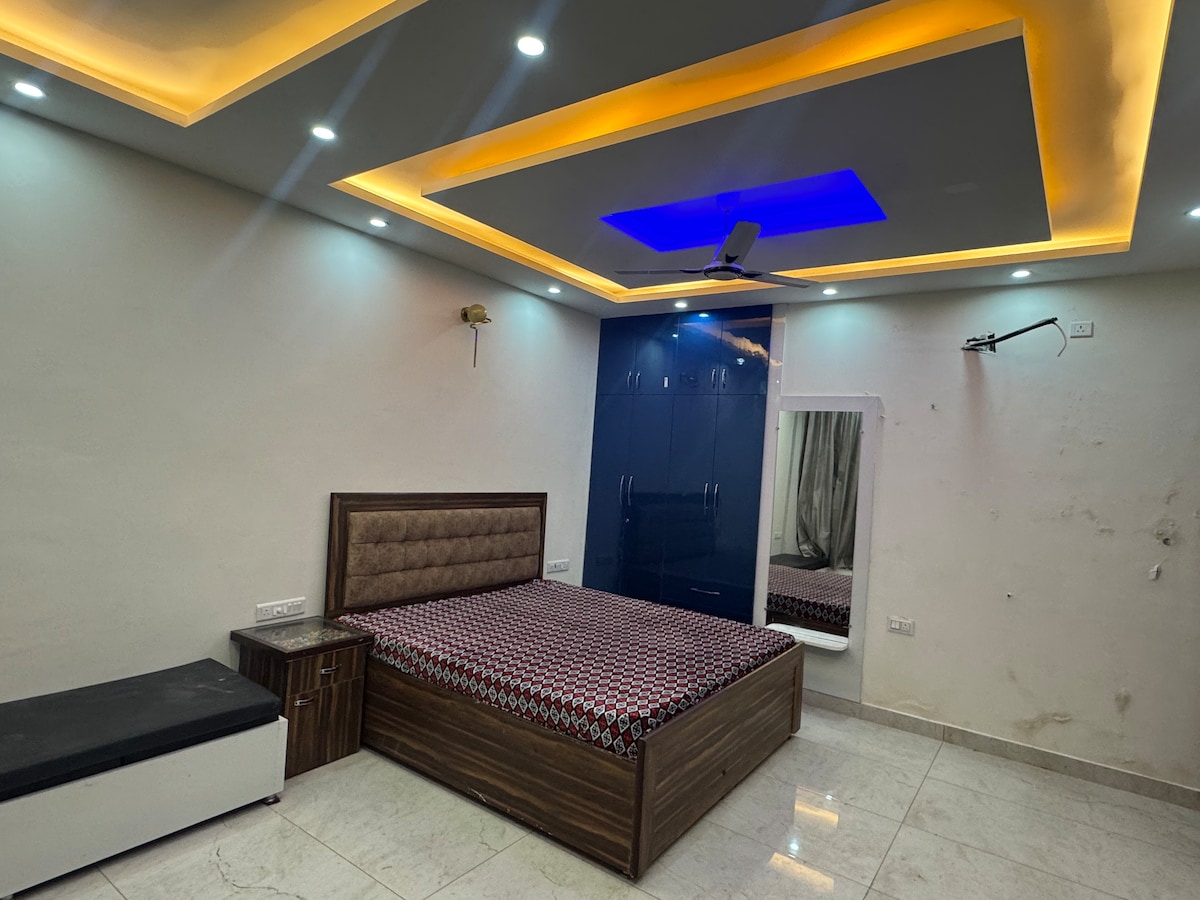 Take it easy at this unique and "Experience an upmarket lifestyle at the heart of Noida next Opposite to Advant Building. With great Restaurants, Bars, Cafe and Spas within 5 min, 25 min away from the Airport and 40 min from Delhi sights. A 5-minute walk to Rapid Metro an ATM, Medical Center, Pharmacy, Salon & Convenience store inside the complex makes it self-sufficient. Living in this aesthetically done home of an Artist will make you enjoy your stay with lots of sunlight and lots of Privacy.