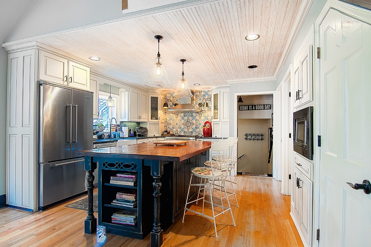 Set behind a 1920s landmark in Five Points, the Raleigh Mill House is a 4BR/2.5BA guesthouse crafted by a local artist from rare woods and rescued architecture, including dramatic circular windows. Guests enjoy the calm, walkable area and the garden with stone paths, koi pond, and cozy fire pit. Inside, a winding staircase, custom carpentry, and a skylit primary suite create an airy, treehouse feel with Raleigh history woven throughout. The home has been featured in HBO filming and local press.