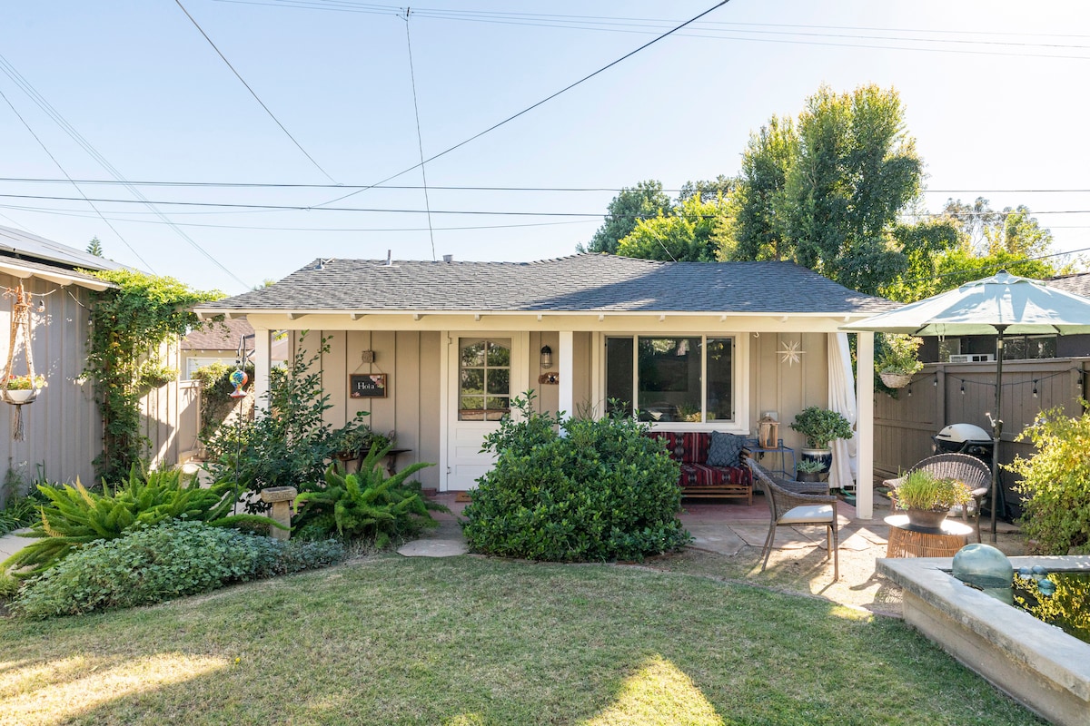 Relax at this unique, tranquil, and comfortable mini home in our backyard. Surrounded by a beautiful garden with a wide variety of succulents and a relaxing pool. With a space to enjoy reading or listening to music. Equipped with microwave, Keurig coffee machine, mini refrigerator, toaster, blender, washer/dryer, and tableware. The mini home has air conditioning and heating system for comfort and a smart TV. No parties allowed.(SPACE EQUIPPED ONLY FOR 2-3 PEOPLE *no more than 3 fit*)