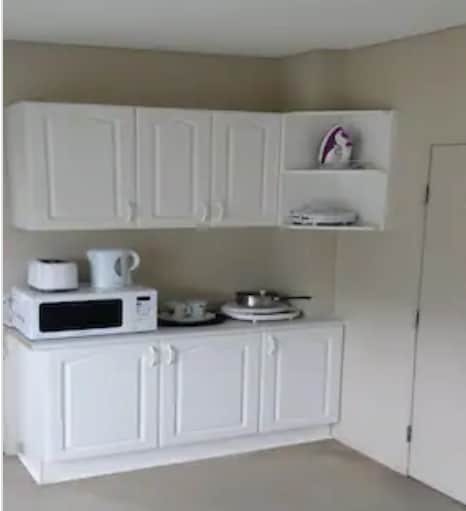 Private entry to queen size room with private ensuite bathroom and mini kitchenette. Mini fridge, jug, toaster and microwave. (Does not have oven or hot plates/cooking hob). Quiet leafy outlook on culdesac street. Constiata doors overlook our private garden and pool. Peaceful, leafy quiet sanctuary. 2 min to train, bus, restaurants and bars. Internet access. Please also be advised the entrance sliding door is also used by elderly mother and not lockable. Bedroom is lockable.