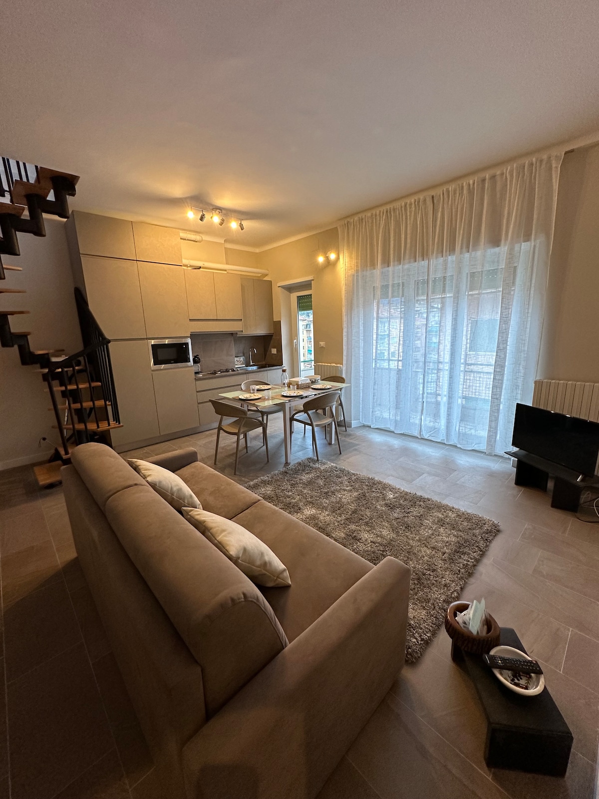 New apartment in the heart of Rapallo. We are at the skyscraper, located 100 meters from the beach. All within a few minutes' walk. The apartment is super modern and equipped with all comforts! The bed is king size, with a super soft layer. The shower is new with music, air and lights. The apartment is fully soundproofed. There is a comfortable balcony, with a blackout curtain. a/ Washer 65" Smart TV All cooking accessories Convenient for visiting Liguria!