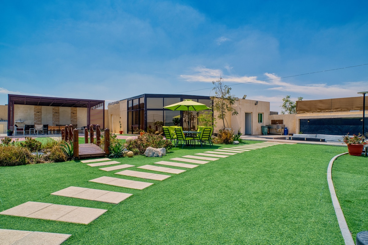 Enjoy a quiet stay in a beautiful house on a private farm surrounded by trees and green spaces with a private pool . The place is ideal for families and those seeking to relax away from the hustle and bustle of the city. The house is fully equipped (3 comfortable rooms, kitchen, outdoor seating, grill). Close to services and main roads, it’s an easy drive from dubai ,it offers a great view of nature. An authentic rural experience with luxury and comfort in the middle of the desert