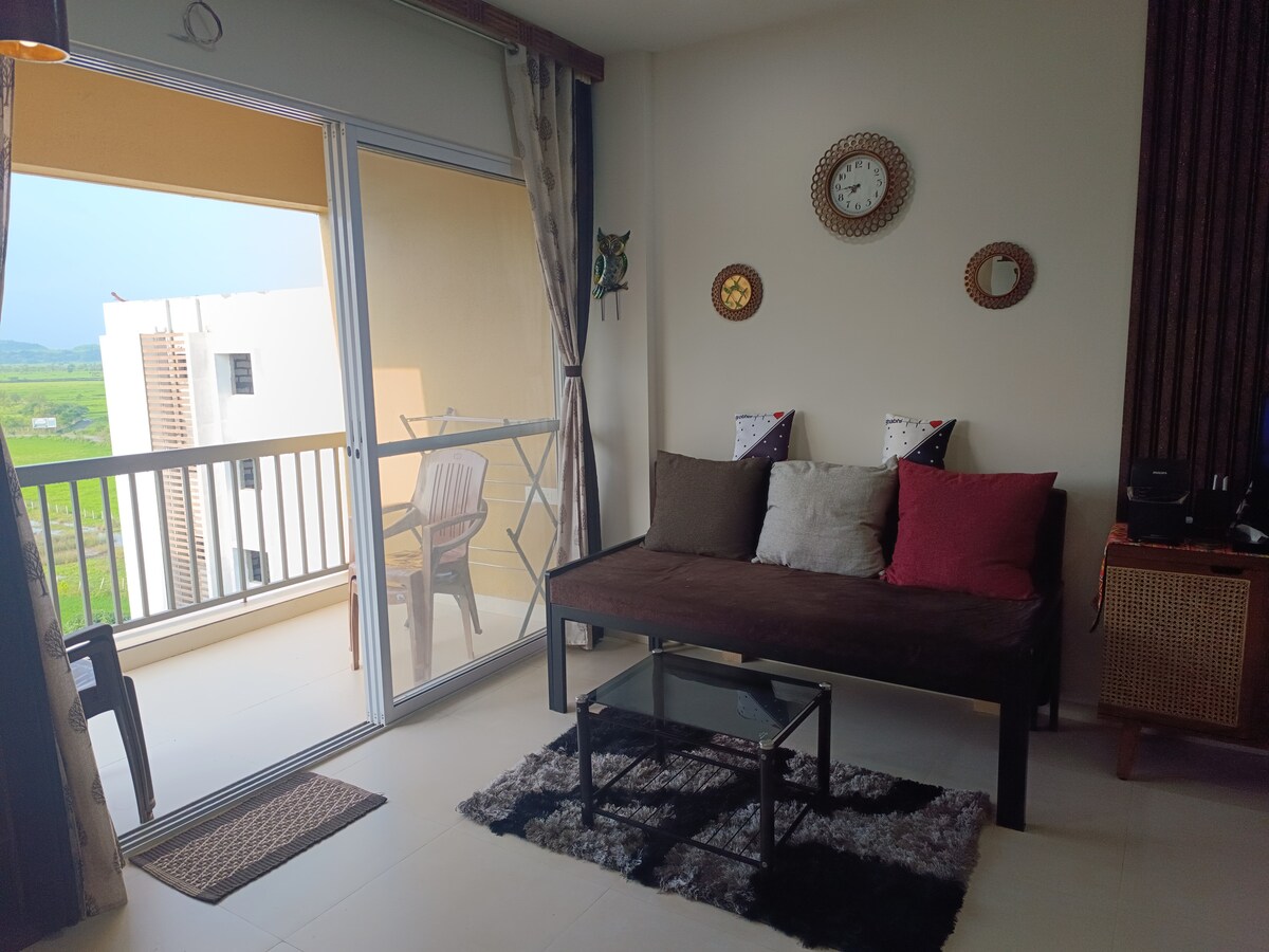 Luxurious Yellow Block Studio at the foothills of Ulhas Valley with a pvt. balcony and panoramic mountain views from the top floor. A peaceful getaway to unwind. Fully loaded with WiFi, JBL 2.1 Home Theatre, BT Music System, Full-HD LED TV. A stylish bathroom with toiletries. Pantry with tea/coffee supplies, RO water, Microwave, Induction Hob, Fridge & s/w Toaster and a comfortable study space. Common amenities on-site like swimming pool, games room, gym, mini theatre, cycling and restaurant.