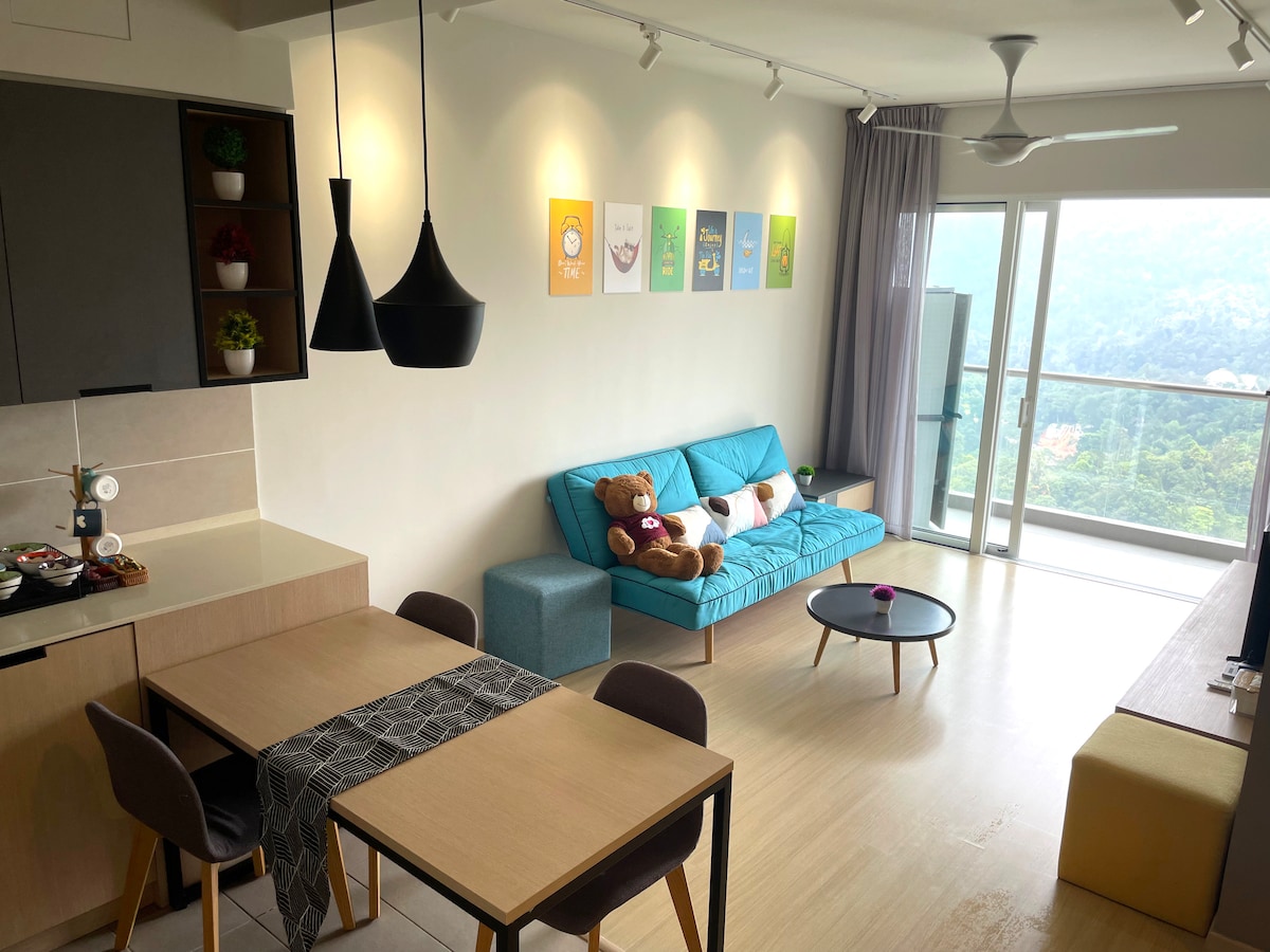 Retreat to our serene, family-friendly retreat nestled on the 23rd floor of Windmill Upon Hill Residence in Genting Permai, Genting Highlands. Enjoy the refreshing, cool breeze and unwind in a peaceful setting. Our spacious unit boasts a private balcony with breathtaking, uninterrupted views of the majestic mountain valley, offering the perfect backdrop for a relaxing getaway. Whether you're seeking tranquility or adventure, our unit promises an unforgettable stay for the whole family.