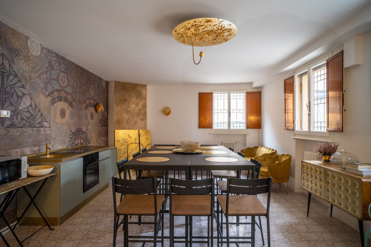 From this home you will enjoy the most evocative view of Ravenna. In the heart of the historic center, your stay will be unforgettable. Close to all the cultural events and UNESCO heritage sites of the city, just 30 meters from the entrance, you can immediately access the Basilica of San Vitale and the Mausoleum of Galla Placidia. This house has all the comforts, large spaces, a terrace and rooms with a unique view. It was one of the churches of Ravenna. The PARKING is about 300 meters away