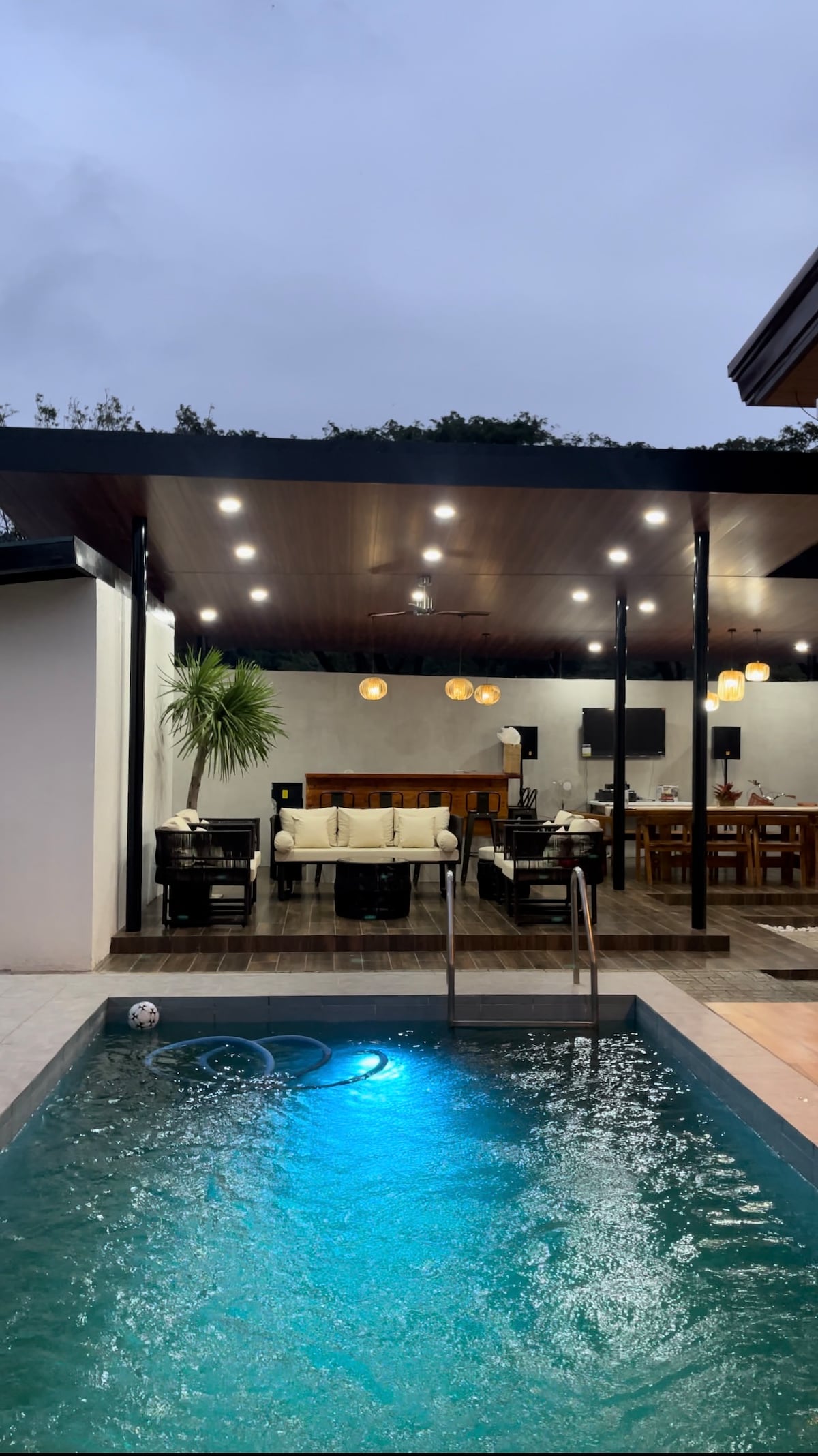 Escape and surround yourself with lush nature, natural hot spring swimming, and panoramic mountain views. Perfect for couples seeking an intimate staycation. This private getaway features an open loft design with a king sized bed overlooking the mountains, a wrap around sunken sofa with pool and garden views, a full kitchen, two full bathrooms, and a waterfall flowing with natural hot springs water