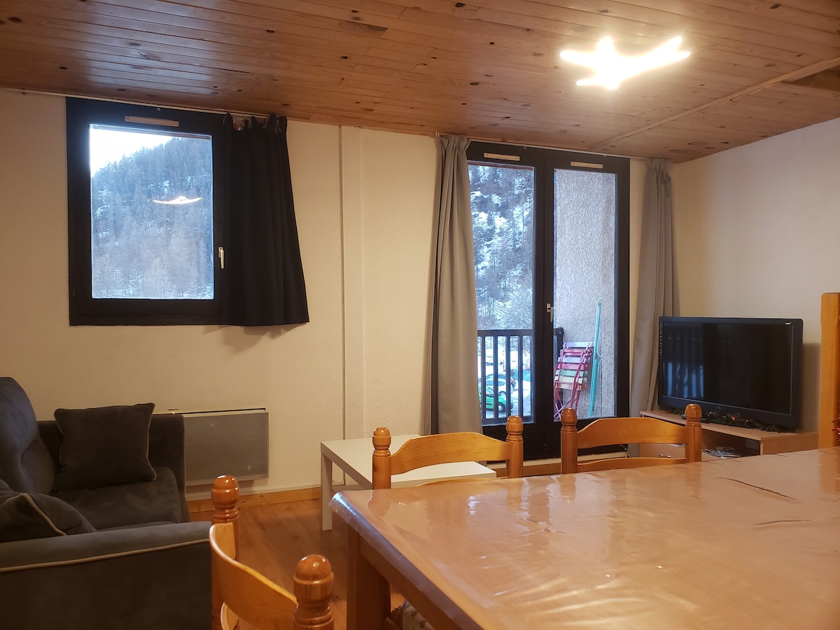 Fully equipped apartment for 6 people in the heart of the resort of Réallon in the Hautes-Alpes (Le Relais building) 26 m2 two-room apartment on the first floor (elevator) East-facing balcony with unobstructed views of the valley and mountains surrounding Lake Serre Ponçon One bedroom with a double bed A sleeping area with bunk beds A sofa bed in the main room Entrance with closet and toilet (separate) Bathroom with shower and towel dryer radiator Equipped kitchen