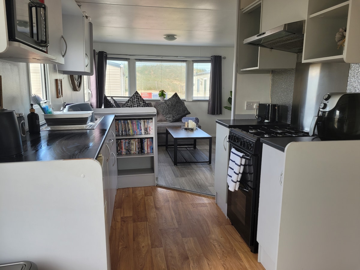 A rare sea-facing static caravan set directly on the sand. This beautifully styled static caravan sits right on the sand, offering a warm and cosy coastal retreat with the sea just outside the door. Thoughtfully designed for comfort and ease, it features plush bedding, fast WiFi, Smart TV, pod coffee, air fryer and generous welcome touches. Calm, inviting and carefully upgraded throughout, it’s ideal for switching off, beach walks and slow, restorative stays at any time of year.
