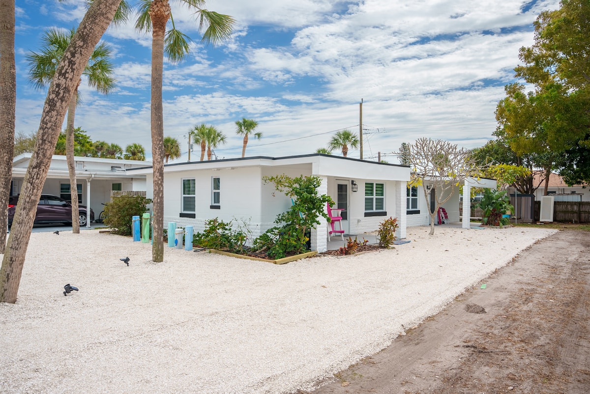 This uniquely decorated guest house is a private oasis with a lovely, private patio. The house is decorated with Latin American art from the owner's collection & travels. Only 11 blocks to downtown and very close to grocery stores, art galleries and all the night light life St. Pete offers. The home has a full kitchen and a very comfortable bedroom for one or two people. A perfect location for those that want to experience a comfortable and relaxing place. Only 12 block walk to Tropicana.