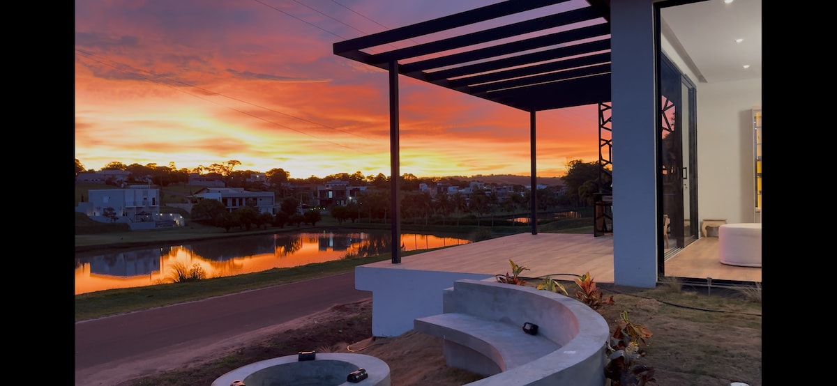 Spacious house, on the edge of the dam, in a gated community with only 28 lots. A project carried out by Ambienta Arquitetura (prestigious by the magazine Arquitetura e Construção and others) with 3,900 m2 of land, 516m2 built, a standard pool, and a smaller heated pool (electric heater), trampoline, slackline, kayak, stand up paddle and barbecue. 5 suites (all with air conditioning) and another toilet. Capacity to comfortably accommodate 14 people plus a baby.