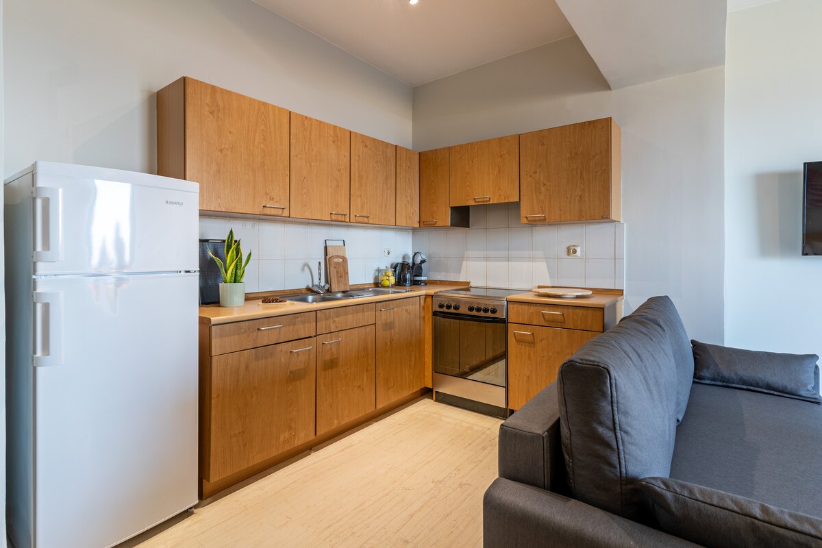 Located in the center of the city,only 750 meters (9 minutes walk),60 m2 Apartment in 3rd floor with 1 bedroom, single living room - kitchen,large balcony and 1 bathroom. The apartment has 1 large double bed, 1 sofa bed, A/C, Wi-Fi, TV, washing machine and many electrical appliances. In a very short distance from the apartment there are: supermarket (20 metres), gas station (240 meters), Bus station (3 minutes walk), bakery (60 meters), café (60 meters) etc