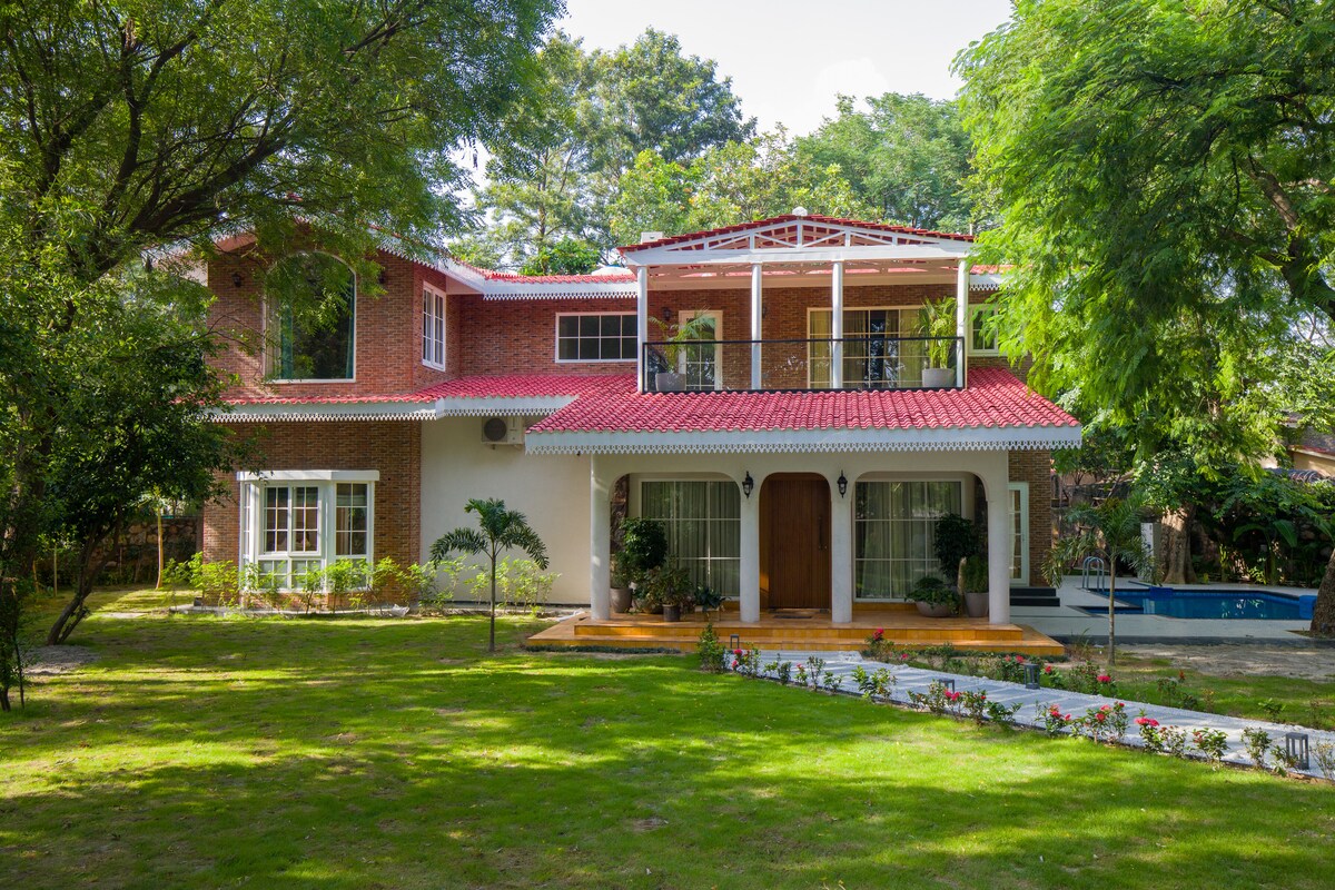 Sarasvaas welcomes you to a newly built countryside retreat set beside Sultanpur National Park. Surrounded by nature and away from the city chaos, this peaceful escape features premium interiors, a serene private pool, and thoughtfully designed spaces for comfort and relaxation. Wake up to fresh air and birdsong, unwind by the pool, and enjoy a slow, luxurious stay close to nature.