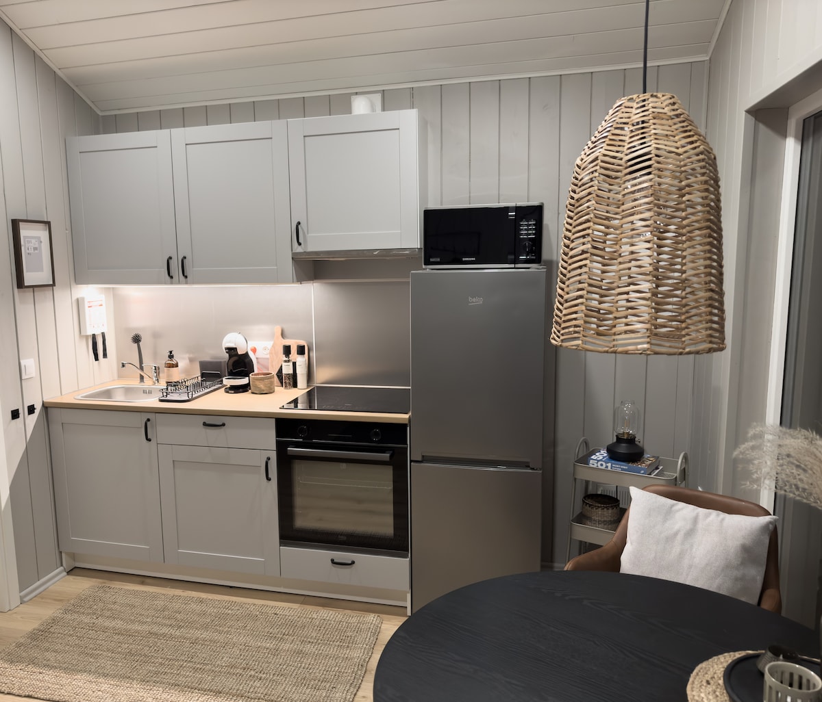 Notaleg og vel skipulögð íbúð með einstaka staðsetningu við gullna hringinn, húsið er byggt 2022. Íbúðin er fullinnréttuð með gistipláss fyrir 2-4 manneskjur. Svefnherbergi með tvöföldu rúmi og snjallsjónvarpi. Borðstofa / stofa með svefnsófi fyrir tvo og snjallsjónvarpi. Fullbúið og snyrtilegt eldhús, baðherbergi með sturtu og helstu hreinlætisvörum, þvottavél og þurrkara. Fallegt útsýni yfir sveitina og í göngufæri er sundlaug, veitingastaður og kjörbúð.