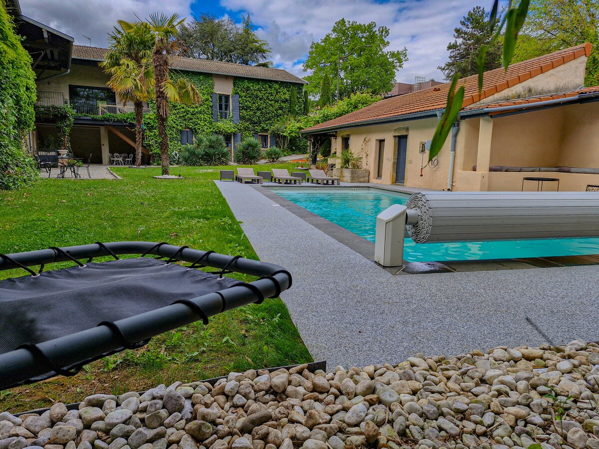 In the Monts d'Or, a natural area 15 min from Lyon, independent accommodation into the villa where we are living. Private terrace and access gym and sauna by reservation. Summer: swimming pool from 8am to 10am, and 2pm to 5:30pm. View of the Saône. Hiking trails, mountain bike rides. Restaurants, Demeure du Chaos Museum, Guinguettes on the banks of the Saône. Lyon Perrache railways 12min by train (railway station 15 min walk), Part-Dieu 35 min by bus.