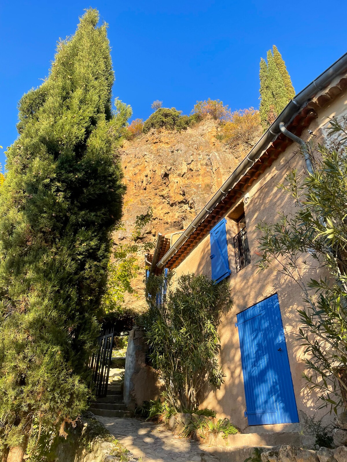 Unusual and cosy. Quirky and inviting. Old meets new. This unique village house boasts two terraces, a small one with magnificent views of the limescale cliff face, and another private terrace in a succulent garden for wonderful dining alfresco. Situated in the heart of Cotignac, the house is within easy walking distance of shops, cafés and restaurants, yet tucked away for peace and quiet.