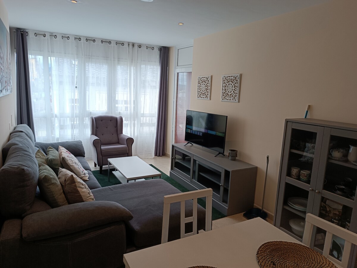 Your family will be close to everything when you stay at this centrally-located place. Fully equipped apartment. It has 2 bedrooms, one with a double bed and the other with two twin beds. Two full bathrooms with shower, one of them in the master bedroom. Separate living-dining room with terrace and kitchen. Free public parking 50 meters away. Located a few meters from the main leisure and restaurant areas. Fantastic beaches 10 minutes away by car.