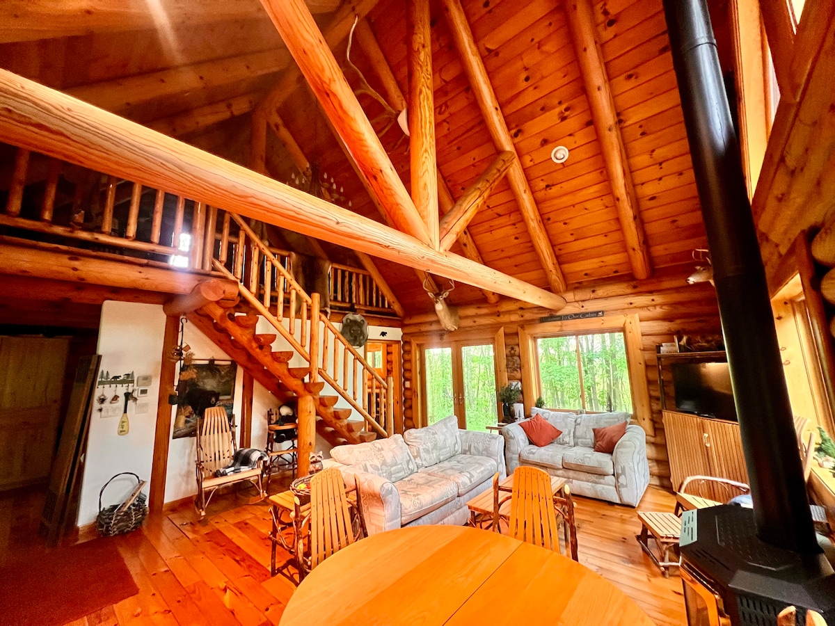 Step away from the demands of life into this hidden gem. Tree Bear Cabin is a 100% real wood log cabin above the bustle of town, nestled among a 67-acre tree farm. Enjoy the quiet of the forest, and the cozy cabin interior. Play games on the wide lawn, explore the trails throughout the property, and make the most of your trip with our noon check-in time and 4 pm check-out times! Activities close by include fishing, kayaking, hiking, wine tasting, UTV Tours, and visiting local shops & Orchards!