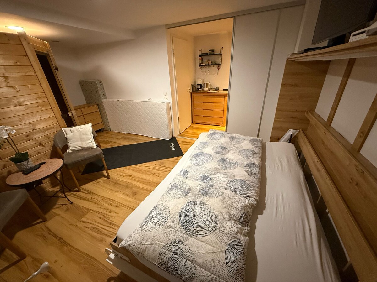 Basement apartment with sauna ideal for trade fair guests & families Sleeps up to 5 people 1 sofa bed/murphy bed (160 x 200 cm) 1 mattress (100 x 200 cm) 2 children's mattresses (140 x 70 cm) Crib Fully equipped bathroom Coffee kitchen Special features: Sauna, sports mat and weights (fitness) Duplo Lego bricks and Schaustoff building blocks for children Top location: To the airport: 50 minutes, to the main train station: 20 minutes Shopping mall, playgrounds, park and swimming lake, all within walking distance.
