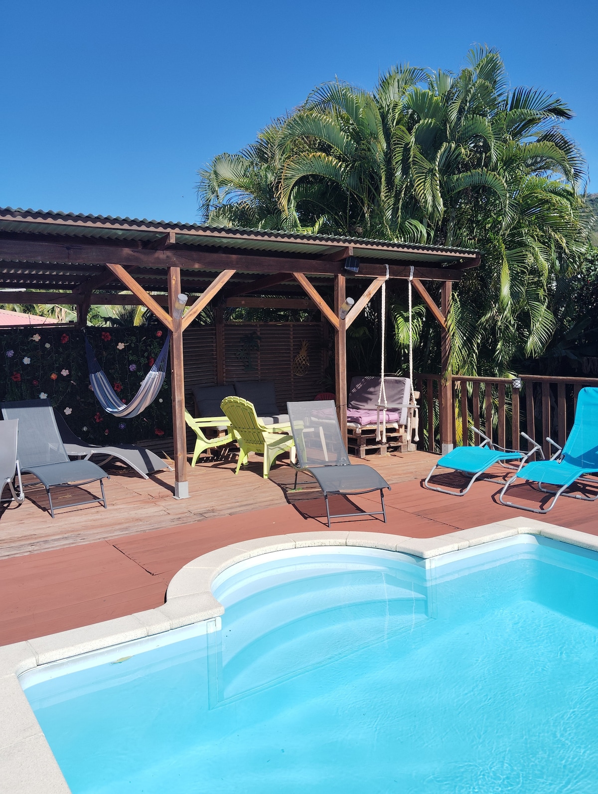 Welcome to Carambole and Pineapple, your little corner of heaven nestled in the heart of the banana trees. This intimate set of 2 brand new bungalows offers magnificent views of the breathtaking Grande Anse Bay. Ideally located on a private property, 5 minutes walk from the beach, on the first heights of Deshaies, they will guarantee you change of scenery, privacy, calm and tranquility. Come and admire the sublime sunsets from your private pool by tasting a tasty planter