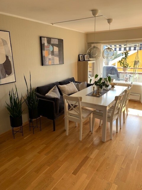 Here you have your own apartment of 63 m2 in quiet surroundings. The apartment is fully furnished and has a fully equipped kitchen and spacious bathroom with washing machine. It is a short distance to the city center and only 100 meters to the grocery store. Private parking space with sports shed in the parking basement The apartment has a private terrace on the ground floor and access to a small playground for small children right next door.