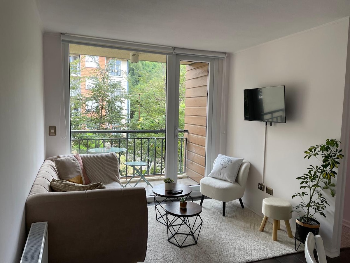 Comfortable apartment in an exclusive building located on the Puerto Varas waterfront with a privileged view of Lake Llanquihue. It has a bright terrace, en-suite bedroom, living room, and integrated kitchen. It has Wi-Fi, central heating, and parking is included. It is located on the waterfront, steps from the beach, restaurants, and shops. The building includes: - A heated pool - An indoor garden - Laundry - Gazebo - 24-hour concierge