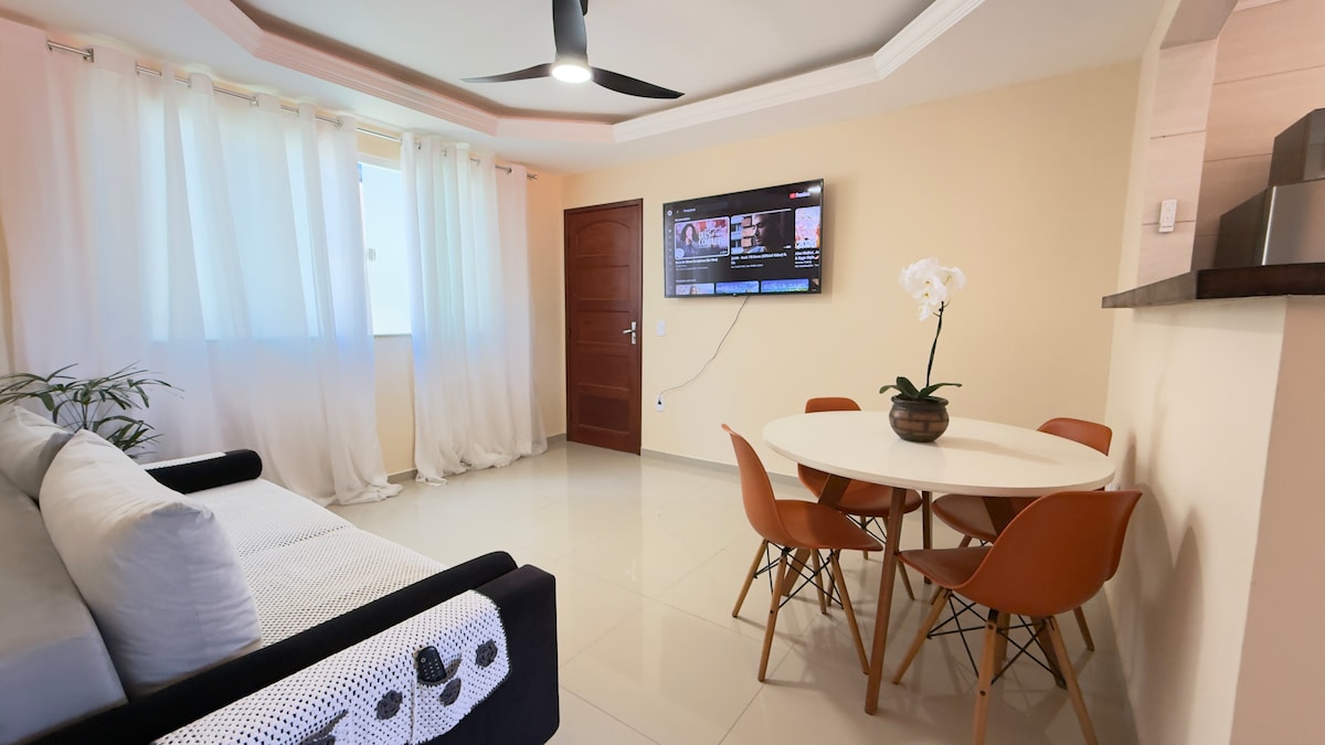 Aproveite momentos inesquecíveis em um condomínio com lazer completo, segurança 24 horas e vizinhança tranquila. Wi-Fi de alta velocidade, ar-condicionado na sala e nos quartos, entrada autônoma, duas vagas de estacionamento, TVs com streaming, cozinha compacta equipada, churrasqueira elétrica, sanduicheira e fritadeira elétrica.