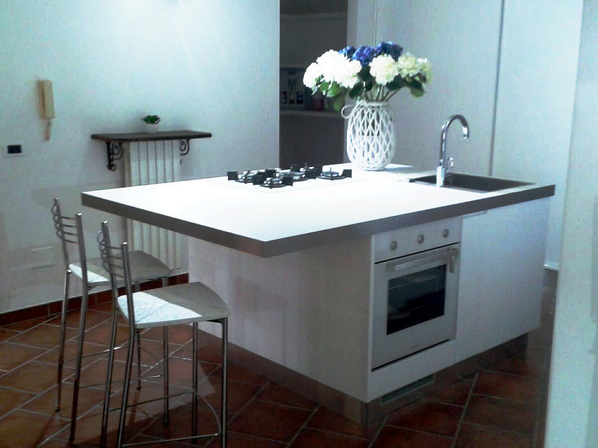 The Campanile apartment consists of a double bedroom, a large living room, and a bathroom. Upon entering, there is a comfortable sofa and a table, KITCHEN and fridge. In the living room area, a built-in closet and two luggage closets have been created. The master bedroom is equipped with a working wood-burning fireplace. The bathroom, equipped with every service, has a large shower with dedicated light points. The living room leads to the outdoor terrace.