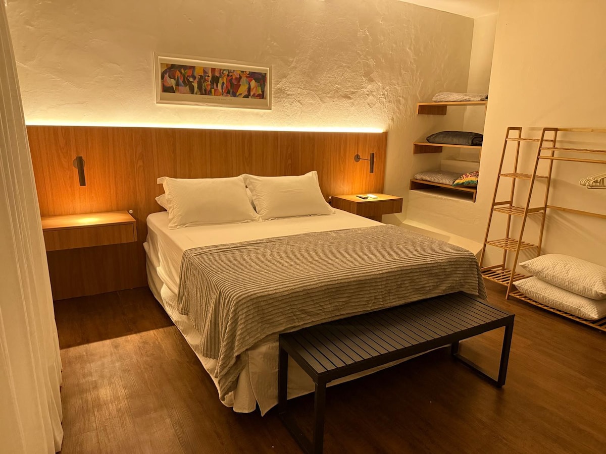 Residential and family apartment. Two air-conditioned dormitories (one with a double bed and one with a single bed), one bathroom, full kitchen, living room with smart TV and sofa bed. Internet and covered garage space for a gated condominium vehicle monitored by security cameras. We offer a bed and bath set. For monthly use, additional electricity consumption fees may be charged if the amount exceeds R$150.00.